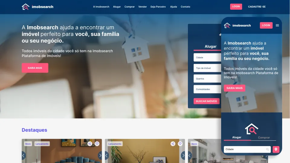 Responsive portal designed for Imobsearch, a real estate platform.