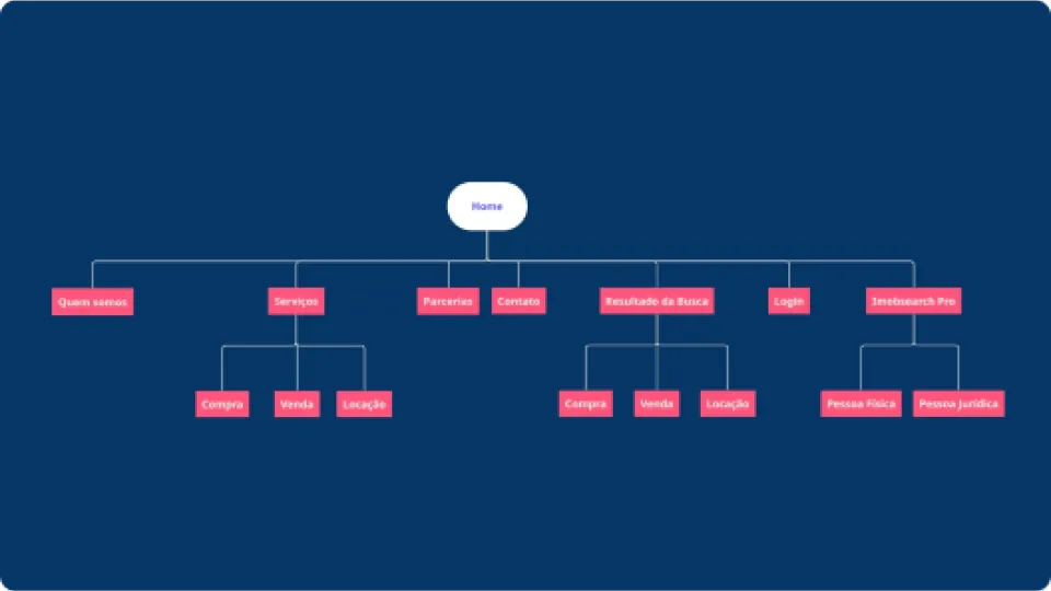 In the UX process for the Imobsearch platform project, I defined the user journey with detailed navigation flows and structured the property search and viewing interface through wireframes.