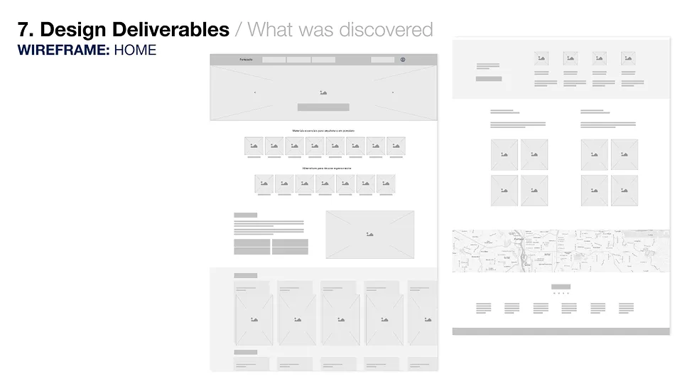 Criei wireframes no Adobe XD para solucionar desafios de arquitetura da informação, organizando conteúdos e produtos de forma clara e intuitiva. A partir desses wireframes, desenvolvi protótipos visuais de alta fidelidade para a homepage e para a página de lista de produtos.